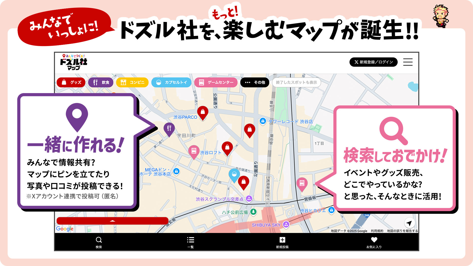 ユーザー登録(X連携)してマップ内にスポットを追加!