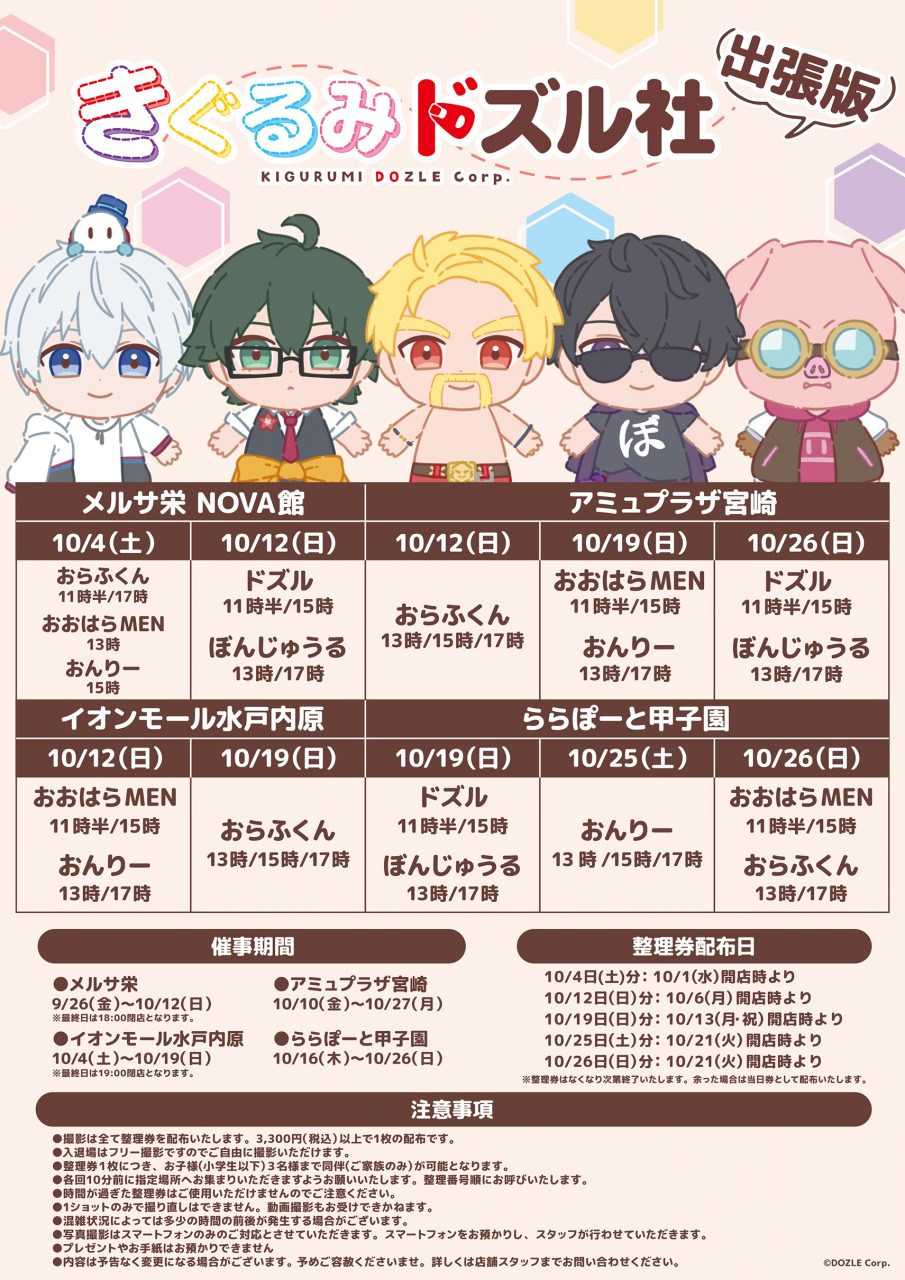 旅するドズル社&ご当地グッズ販売の愛知・宮崎会場へきぐるみドズル社が出張にいきます!