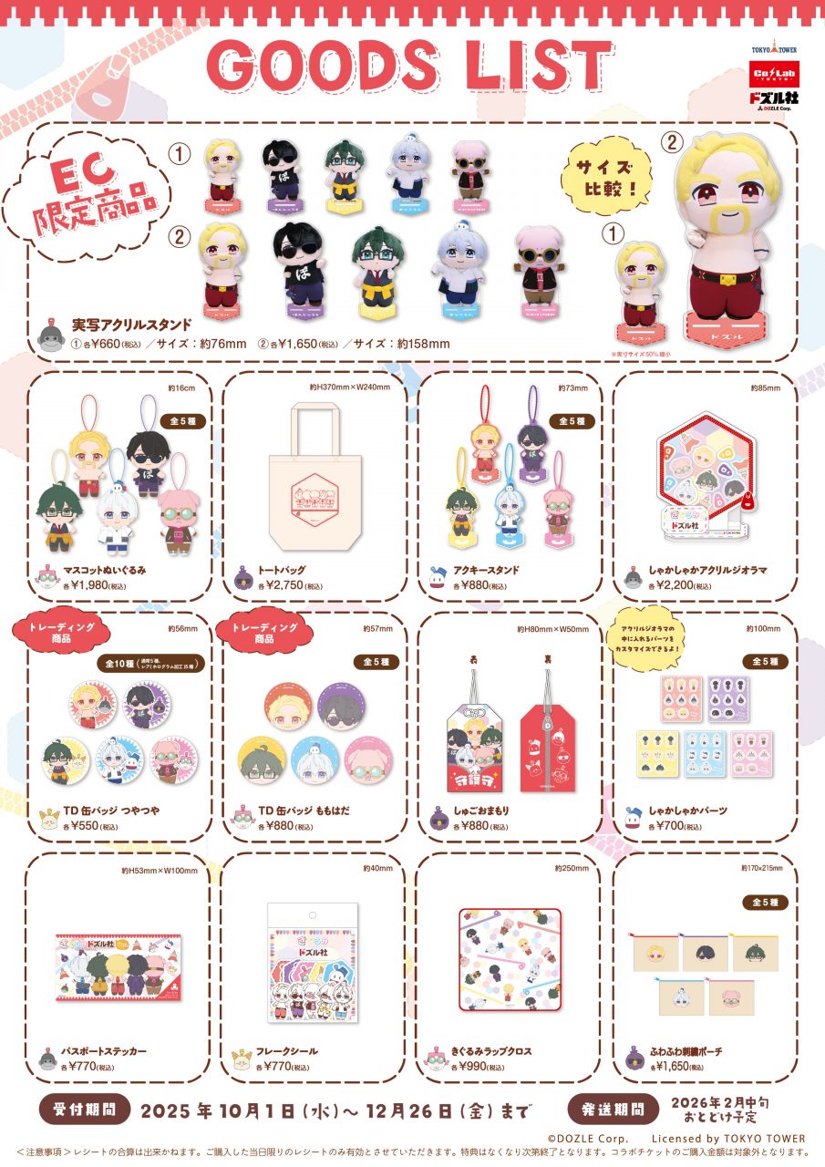 EC限定商品で、きぐるみドズル社の実写アクリルスタンドが2種のサイズで登場します。