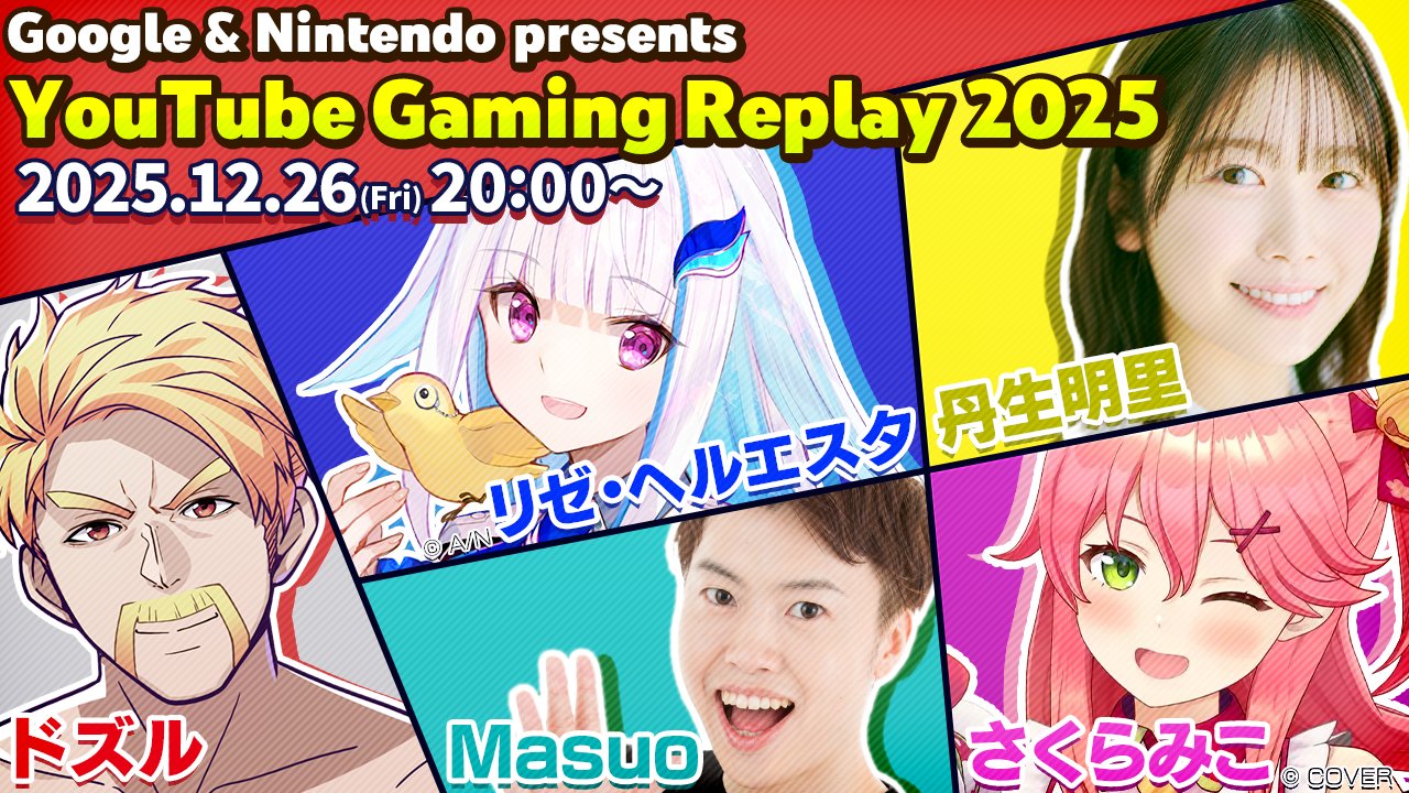 2025年12月26日(金)にYouTube Japan 公式チャンネルにてプレミア公開される「Google & Nintendo presents「YouTube Gaming Replay 2025」」に、ドズルが出演します。