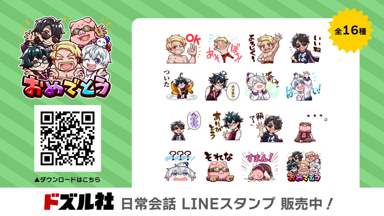 ドズル社の新しいLINEスタンプが登場!日常会話で使いやすいワードを集めた全16種類のスタンプです。