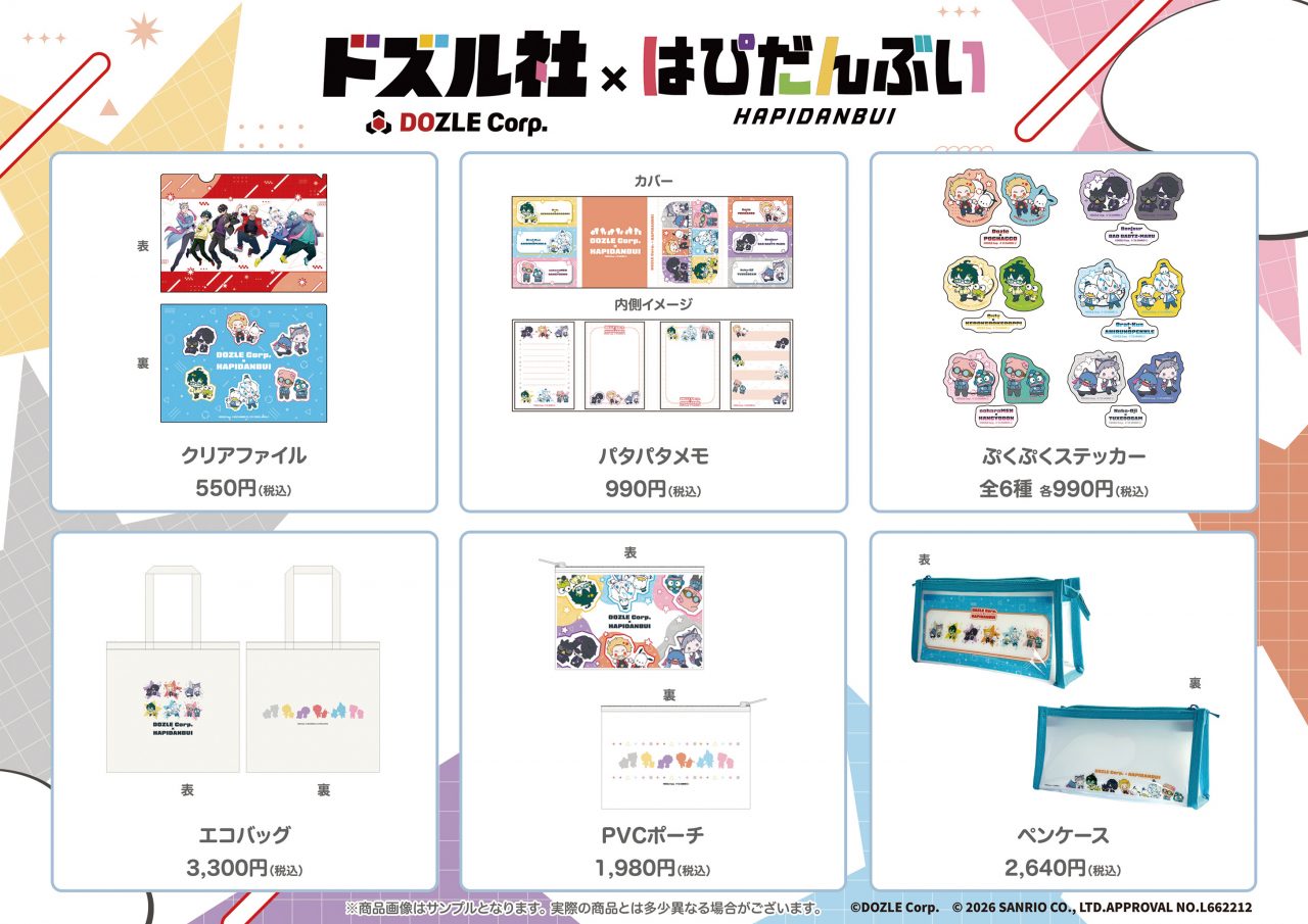 はぴだんぶいとドズル社メンバー5人&ネコおじのイラストを使用したコラボグッズが登場!