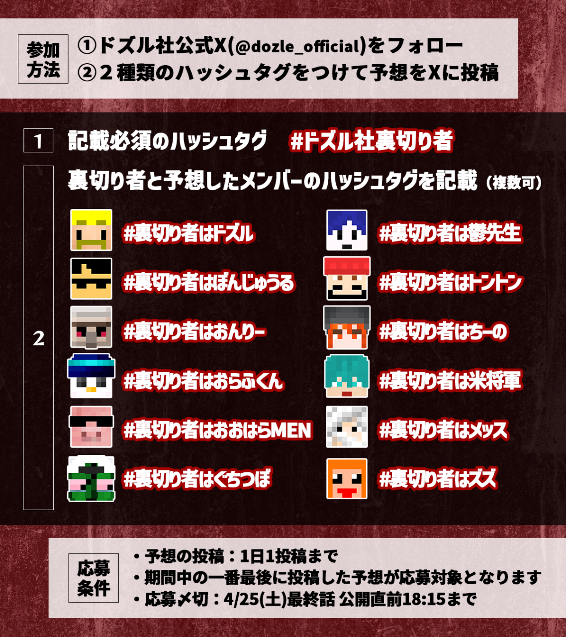 Xで裏切り者予想キャンペーンも実施!ご参加お待ちしております!